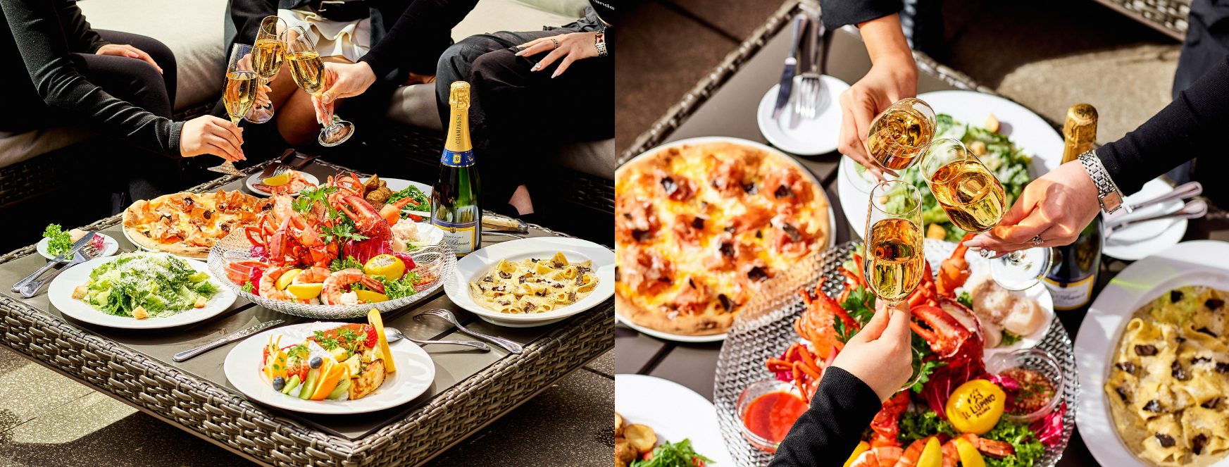 「エクスプロアパーティープラン」では、乾杯グラスシャンパンと共にこだわり抜かれた⾷材で彩られたシーフードプラッター、シグネチャーメニューであるUSDA PRIMEサーロインステーキやトリュフクリームソースの⾃家製パッパルデッレなどイル・ルピーノ・プライムならではの本格イタリアンを皆様でご堪能いただけます。