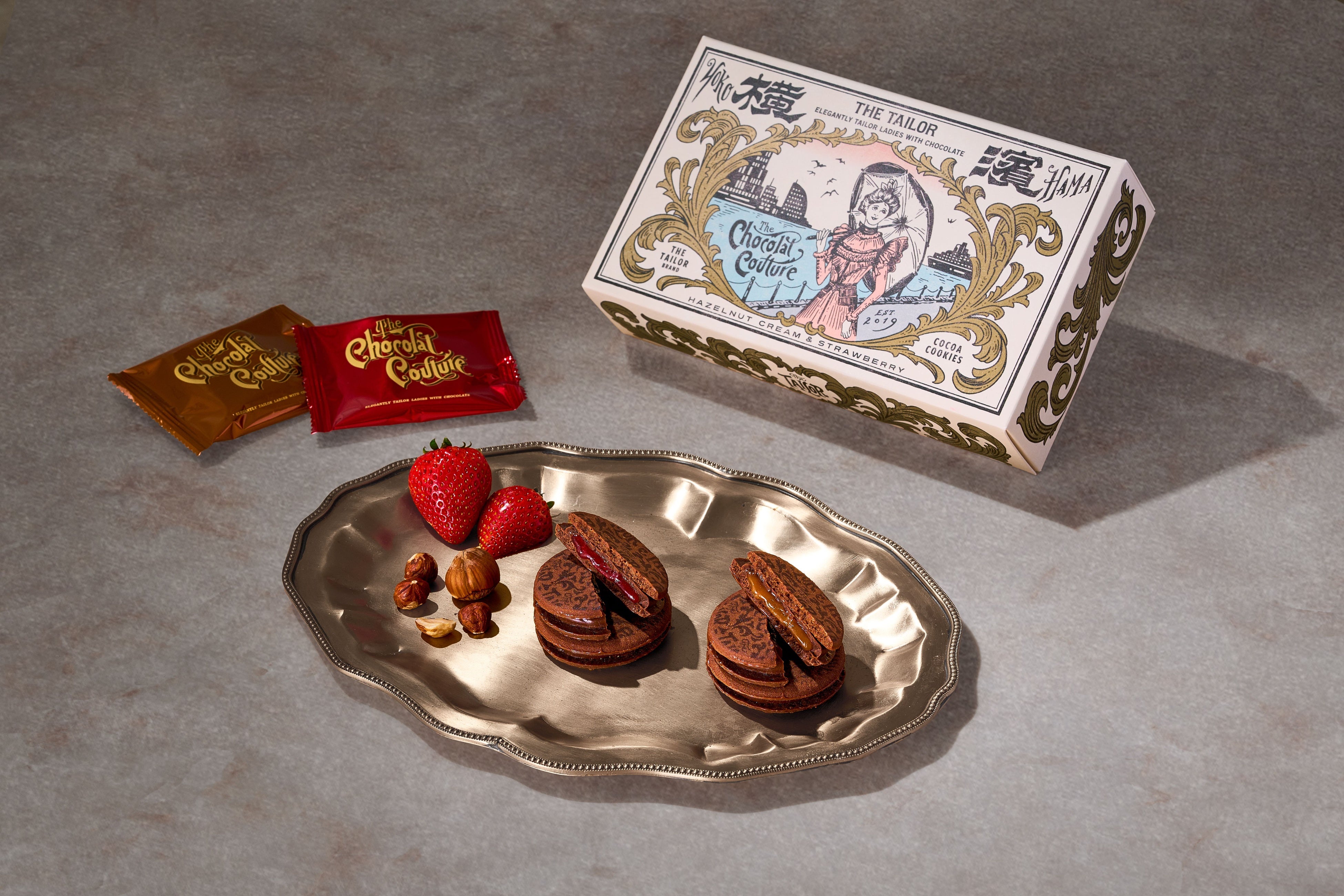 風味豊かな2種類のソースをミルクチョコレートでコーティングし、さっくりと焼き上げたココアクッキーでサンドした、贅沢な味わいのショコラサンドです。 濃厚なヘーゼルナッツクリームと、爽やかな酸味のストロベリーソースの2つの味のアソートで。