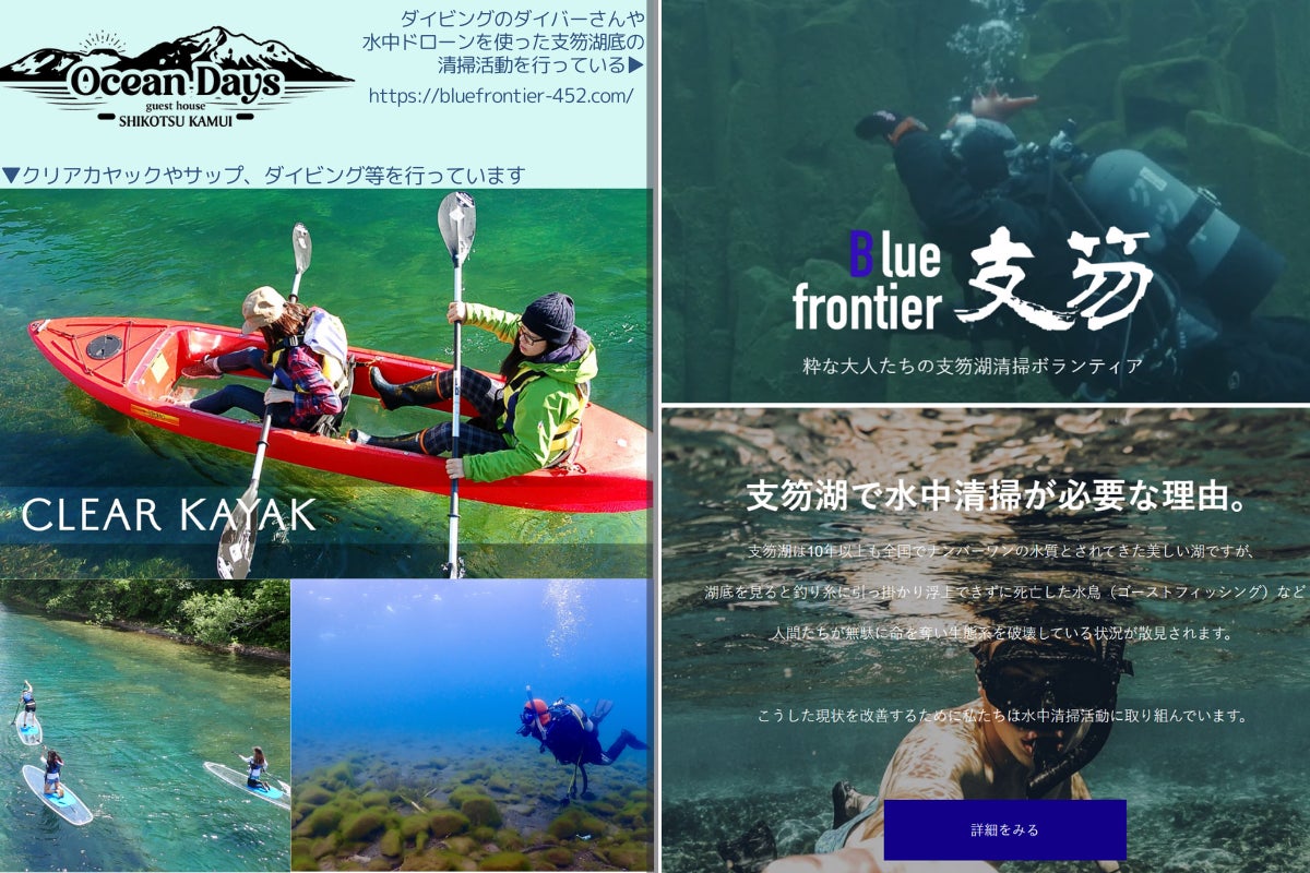 豊かな森が育む美しい湖。それに魅せられ集まる人々。当然ながら、人の集まるところに浮上するのはゴミ問題。この豊かな環境を守るための活動を大小さまざまな団体が行っています。特に、支笏湖の人気アクティビティ事業者である、カヌー事業の「支笏湖ガイドハウスかのあ(代表:松澤直紀さん)」さん、カヤックやダイビング事業の「オーシャンデイズ(代表:板谷貴文さん)」さんは、環境の<利用>と<保護>を考え、環境保全を第一線で活動しつづけています。この度開発中の「支笏湖ビール」も資源の<利用>をさせて頂くだけではなく、<保護>につなげられる活動となるよう、販売がスタートできた折には売り上げの一部を環境保全活動資金として寄付をさせていただきたいと考えております。