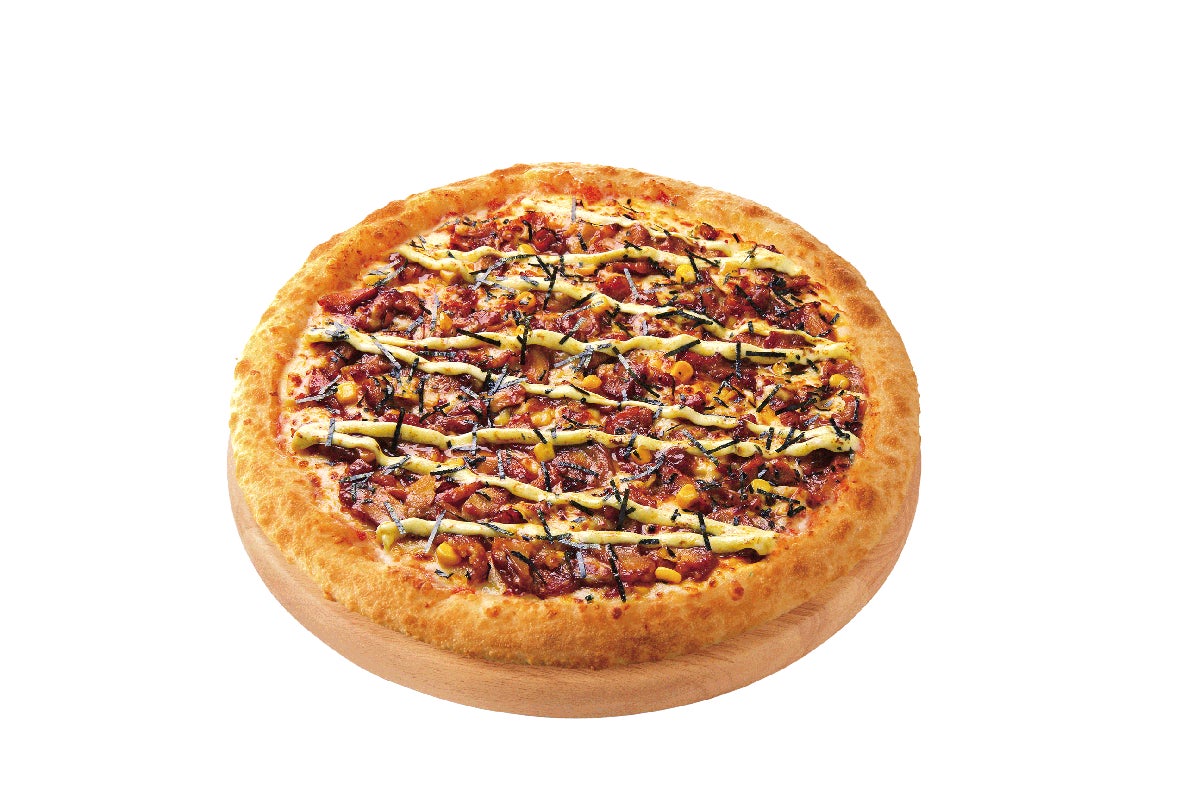 ■商品説明: 厳選した鶏もも肉をピザハット特製の生姜醬油たれでしっかりと味付けし香ばしく焼き上げたテリヤキチキンをたっぷりのせました。特製マヨソースの酸味とコーンの甘みが相性抜群の和風ピザです。食べる直前に別添のきざみ海苔をかけてお召し上がりください。
