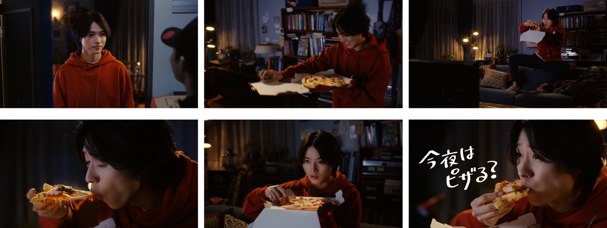 今回、ピザハットさんのCMに起用していただき、すごく嬉しく思っています!ピザハットさんは、トマトソースとチーズにとてもこだわりがあるそうで、撮影中に食べさせていただいたのですが本当に美味しくて、食べて美味しいなというのがリアルに映像に出ていると思います。僕のおすすめは、プレミアム・マルゲリータです。 平日の夜に食べると、それだけで素敵な特別な1日になった気がします。 みなさんも自分のお気に入りの特別なピザを1枚見つけてみてください!