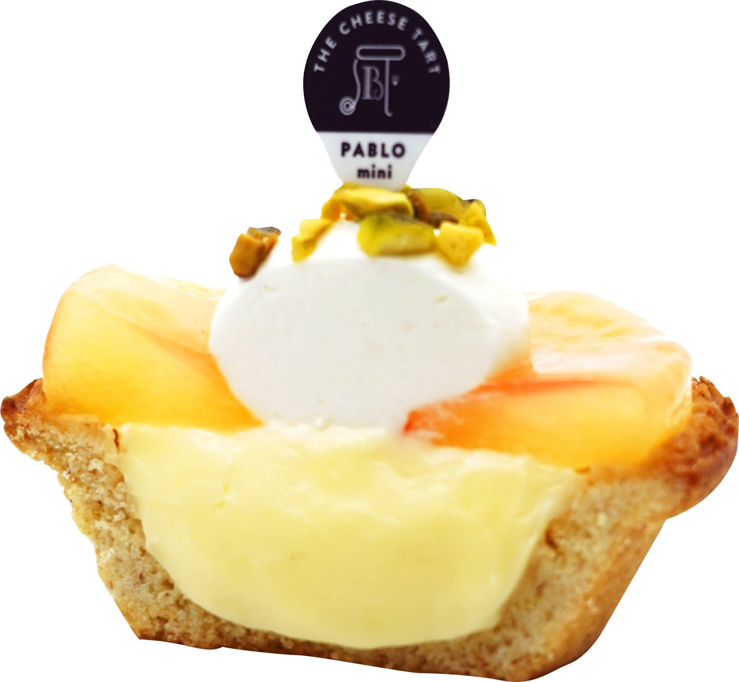 こんがりと焼き上げたチーズタルトに桃のスライスを重ねて中心にヨーグルトホイップクリームを絞り、ローストピスタチオをあしらいました。桃の甘い香りと果肉の食感に、柔らかな甘さのヨーグルトホイップクリームで爽やかな味わいのチーズタルトに仕上げております。