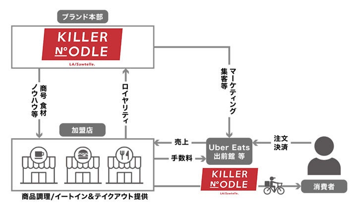 日本国内のみならず、海外でも抜群の知名度有するつけ麺のパイオニア「つじ田」が生み出した米国担々麺専門ブランド「KILLER NOODLE つじ田」が、ブランドシェアリング専用に開発した、デリバリーでもお客様に美味しく召し上がって頂ける圧倒的な商品力が魅力。