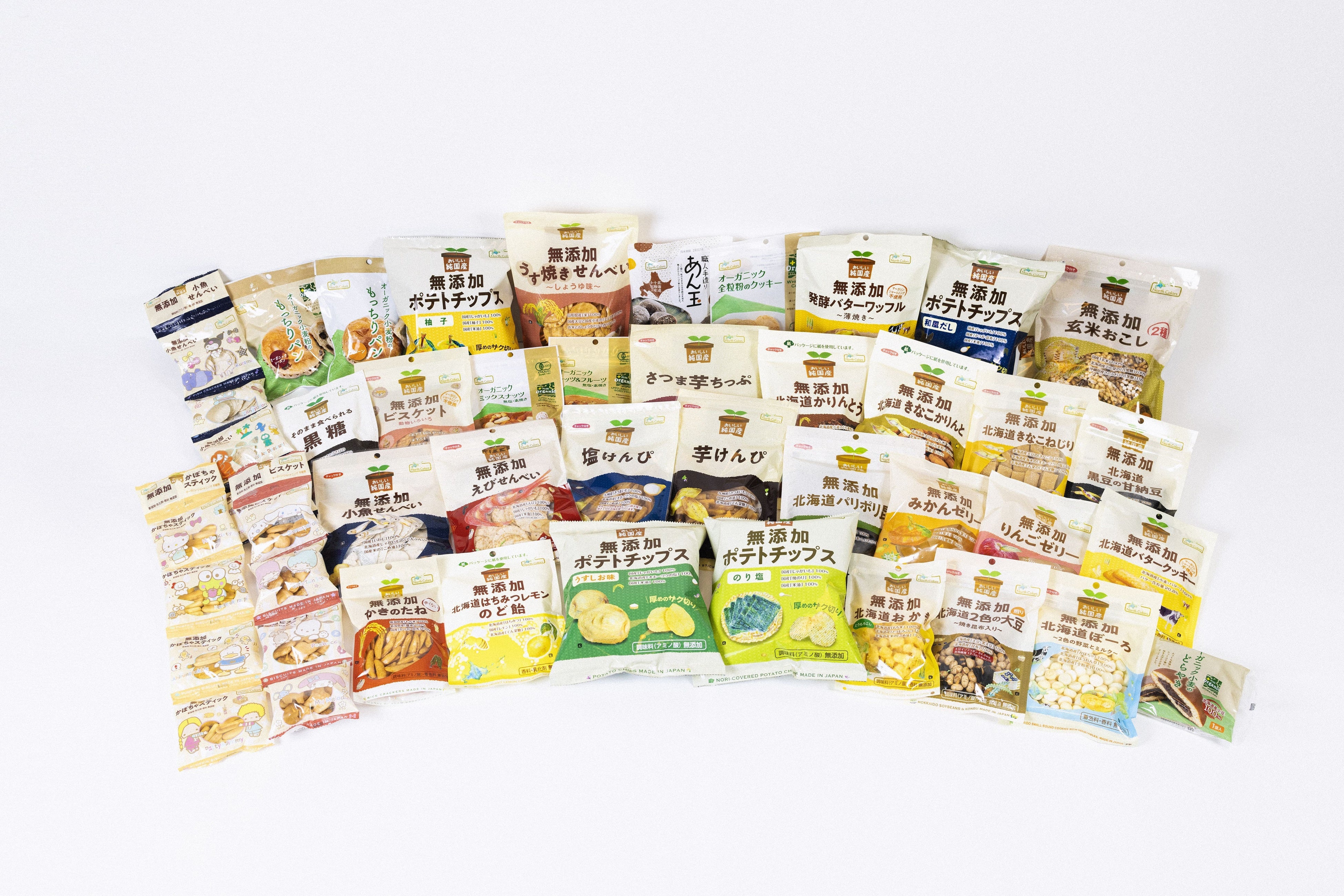 弊社のお菓子は、「おいしい純国産」と「プラスオーガニック」の2つのシリーズがあります。