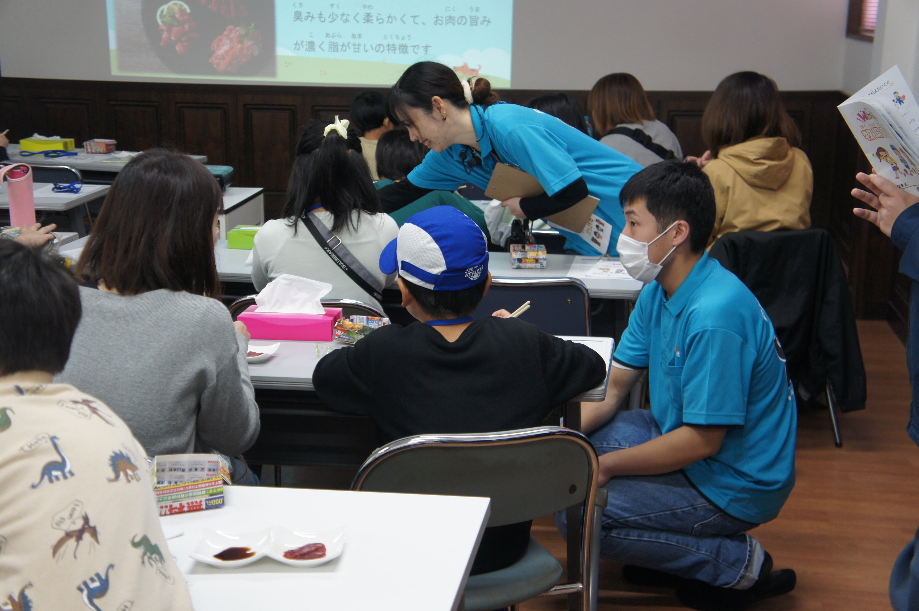 普段口にするお肉がどのように育てられているのか、牛や馬がどのように生活しているのかをクイズや動画を交えながら楽しく学んでもらおう!そして、「食育」としての機会、「熊本の食文化を伝える」機会としても担っております。