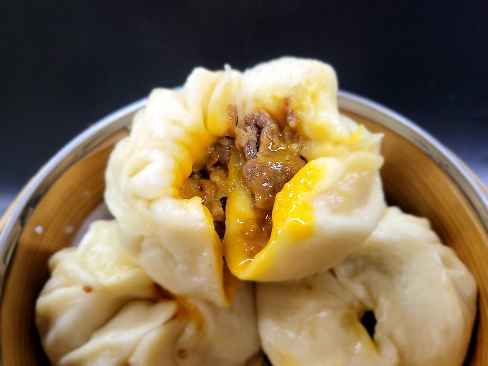 福まんりっちは福井をギュッと詰め込むをコンセプトに、ふっくらもっちりとした生地の中に、甘辛く味付けした若狭牛を包み込み、卵黄を閉じ込めた肉まんです。
