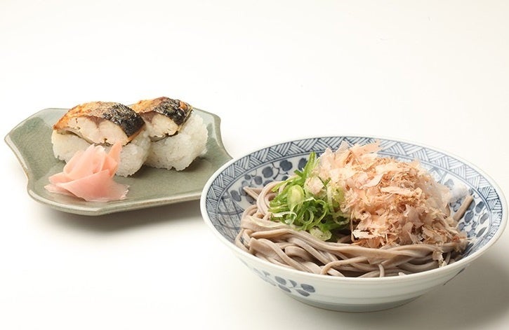 福井名物越前おろしそばと焼き鯖寿司を一度に楽しめるおすすめセット。