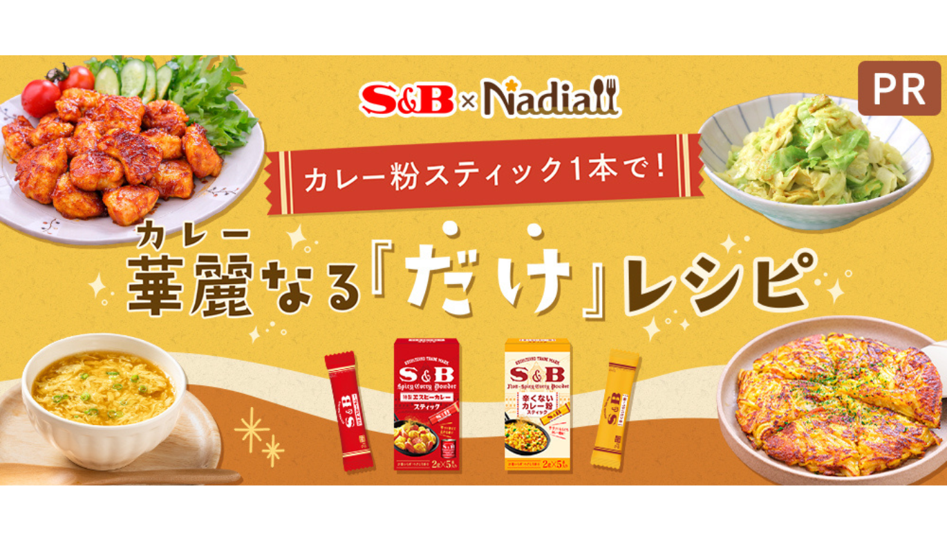 ~特別企画ページ「カレー粉スティック1本で!華麗なる『だけ』レシピ」にて、カレー粉スティックを使ったレシピを紹介。~