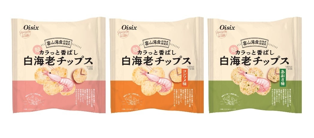 当社では2023年11月、富山県内で白海老を加工する際に廃棄されていた身のついた殻の部分をアップサイクルした「カラっと香ばし 白海老チップス」を発売、5ヶ月で出荷が10万袋を超える人気商品となっています。チップスの原料となる白海老を扱う加工メーカーでは、日々の漁獲量が落ち込み、白海老の刺身加工ができず、そのため身つきの殻もない状況です。