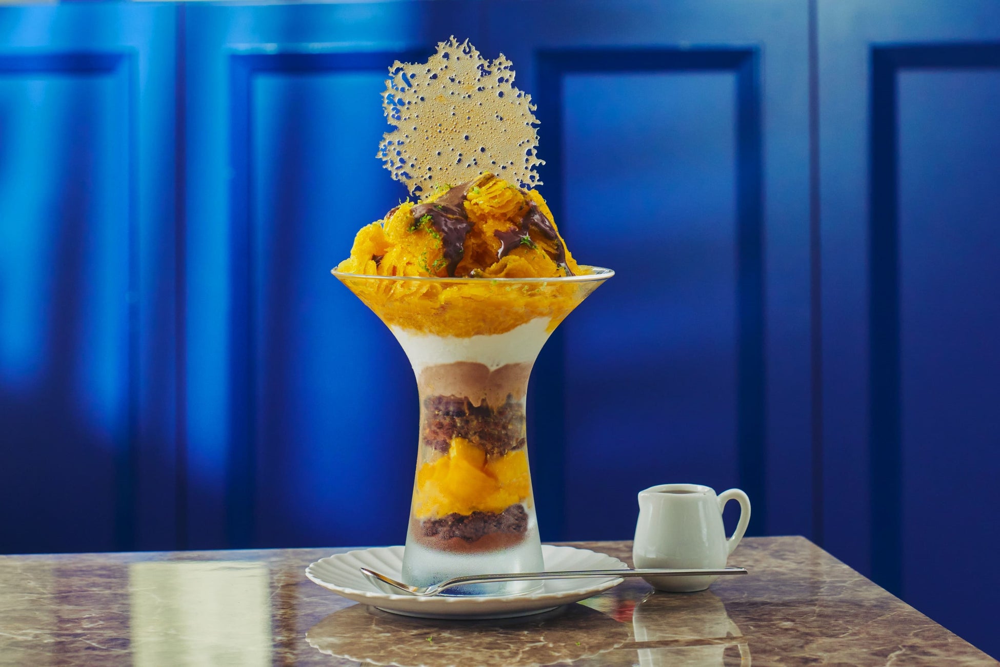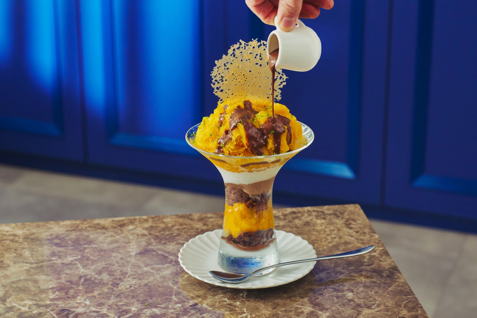 商品詳細:2024年初登場の「カファレル トロピカル マンゴーかき氷」は、レモングラスで香り付けしたチョコレートソースの上にフレッシュマンゴー、ジャンドゥーヤパウンドケーキ、チョコレートジェラートなどを重ね、トップにふわふわ食感のマンゴーかき氷をオン。仕上げにライムの皮をトッピングしました。お好みでカカオビネガー入りのチョコレートソースをかけて味の変化をお楽しみいただけます。マンゴーと香り豊かなチョコレートは相性抜群。チョコレートの老舗ブランドならではの味わいをご堪能いただけます。