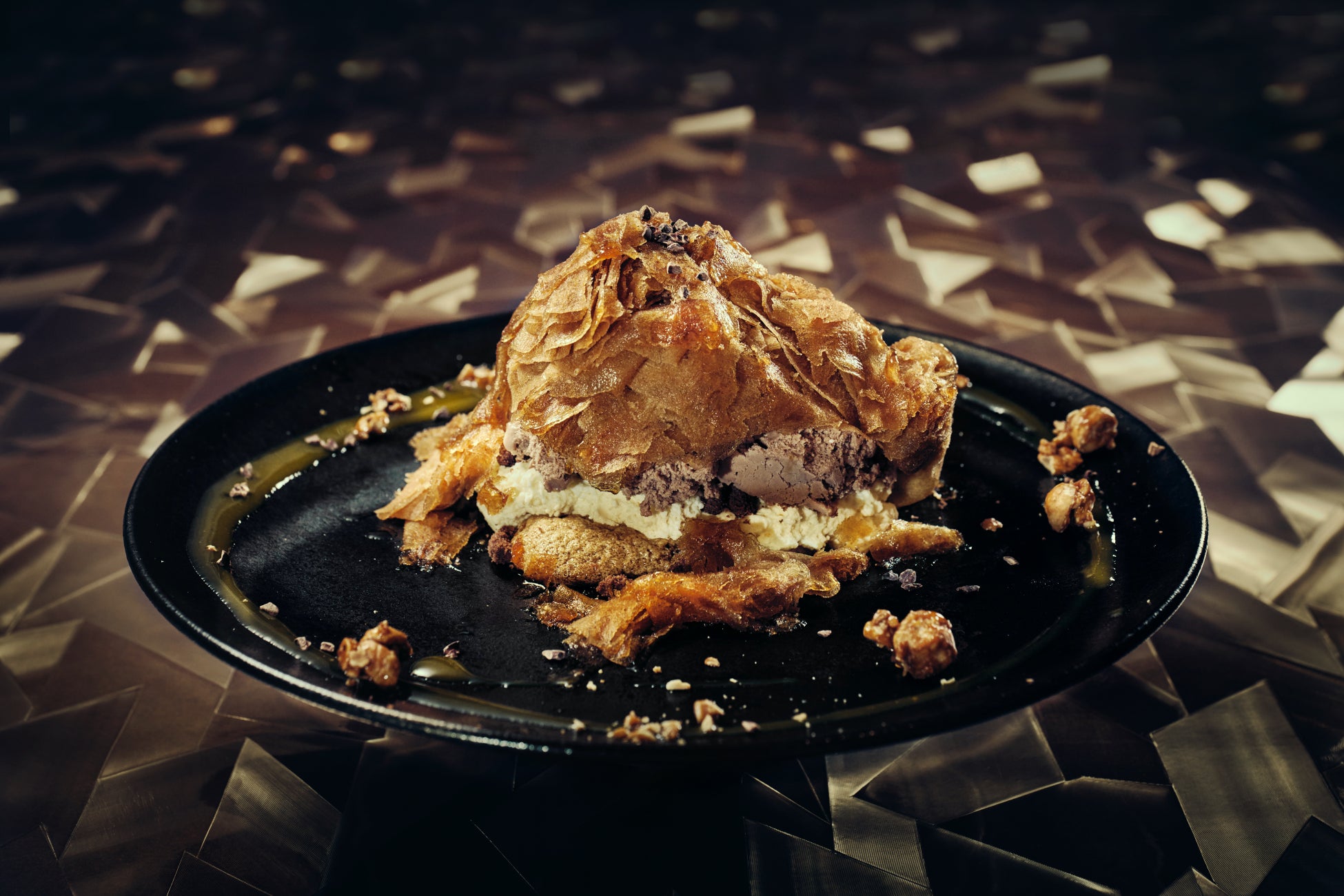 商品詳細:昨年大好評だった「カファレル ジャンドゥーヤ ティラミスかき氷」が今年も登場。コーヒーシロップをたっぷり浸したビスキュイの上に、濃厚なマスカルポーネクリーム、チョコレートのシュトロイゼルやジャンドゥーヤジェラートを重ね、仕上げにフワフワ食感のエスプレッソのかき氷をトッピング。ティラミスをそのまま冷たいかき氷としてお楽しみいただける味わいです。また、かき氷のまわりにはキャラメリゼしたヘーゼルナッツや、かつて「禁断の酒」とも言われたハーブ酒「アブサン」で香り付けしたマンゴーオレンジソースをあしらい、プレミアムな大人のかき氷に仕上げました。