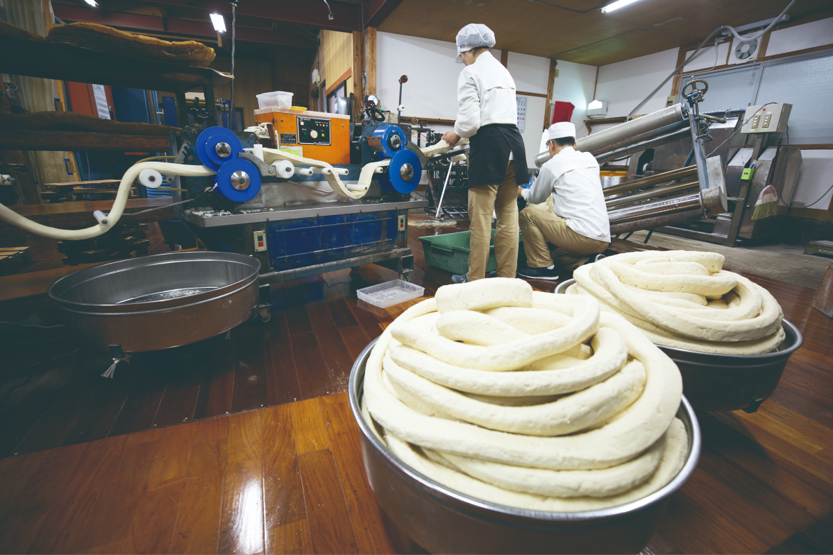 火山灰層などで濾過されたミネラル豊富な地下水で粉を捏ね、