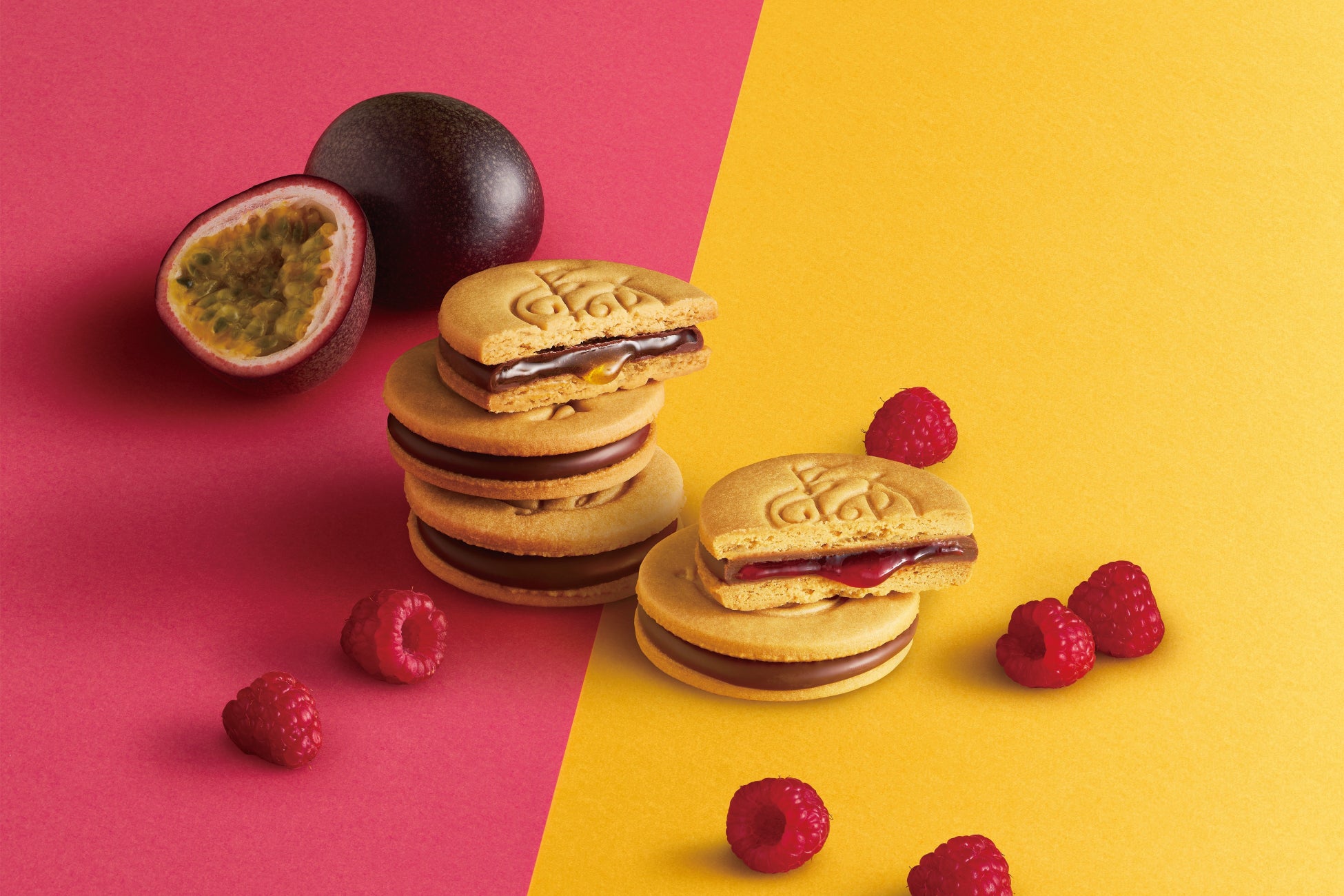 『果物屋さんのフルーツキャラメルサンド』の開発の際には、フルーツの美味しさを感じていただけるよう味わいにとことんこだわり、ミルクチョコレートと相性が良いフルーツを何回も試作を重ね選別したほか、チョコレートの甘さやキャラメルソースのトロっとした食感、クッキーの生地の厚さまで、フルーツの美味しさが最も感じられるバランスとなるよう時間をかけて開発しました。あっさりとした米粉入りクッキーを使用しており、全体的に甘すぎない味わいに仕上げているためフルーツの香りがより引き立ち、さっぱりとお召し上がりいただけます。女性はもちろん男性にもおすすめの商品です。