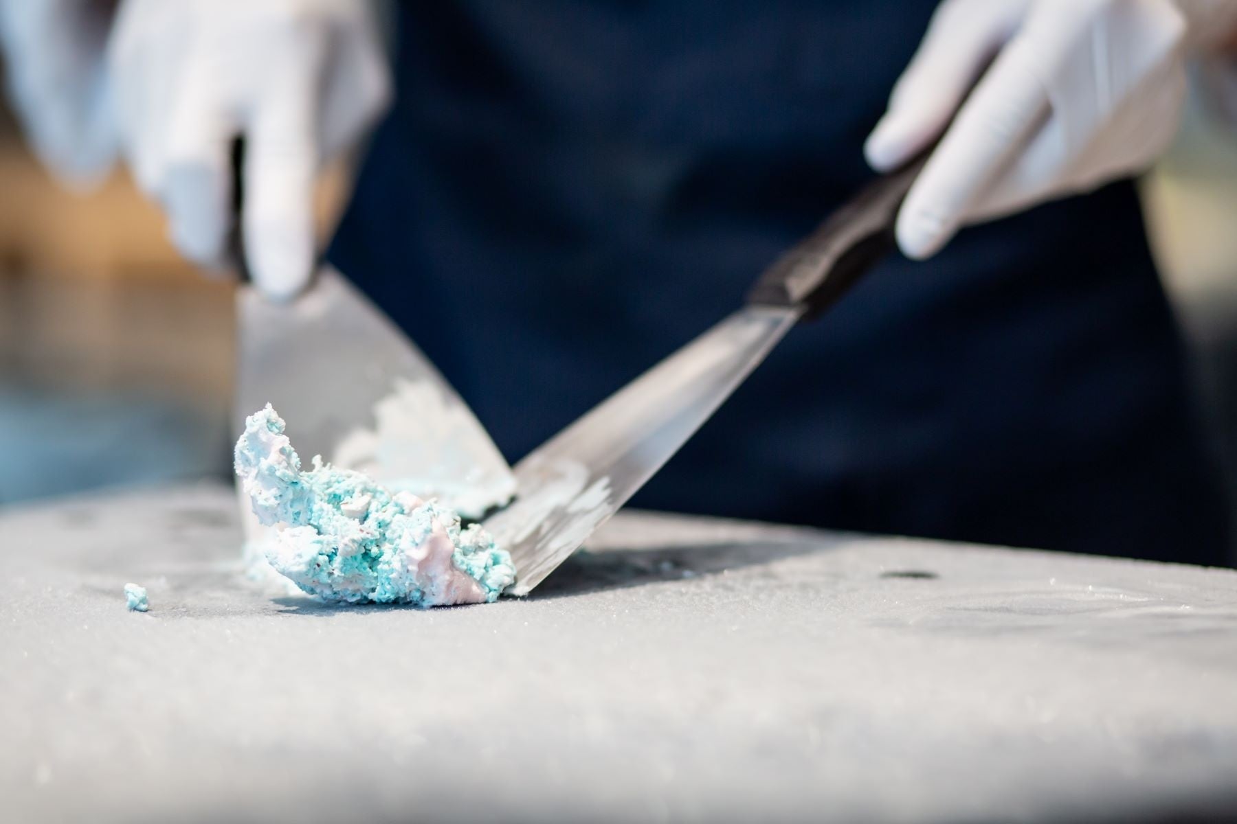 6種のアイス、8種のトッピングのカラフルストーンアイス