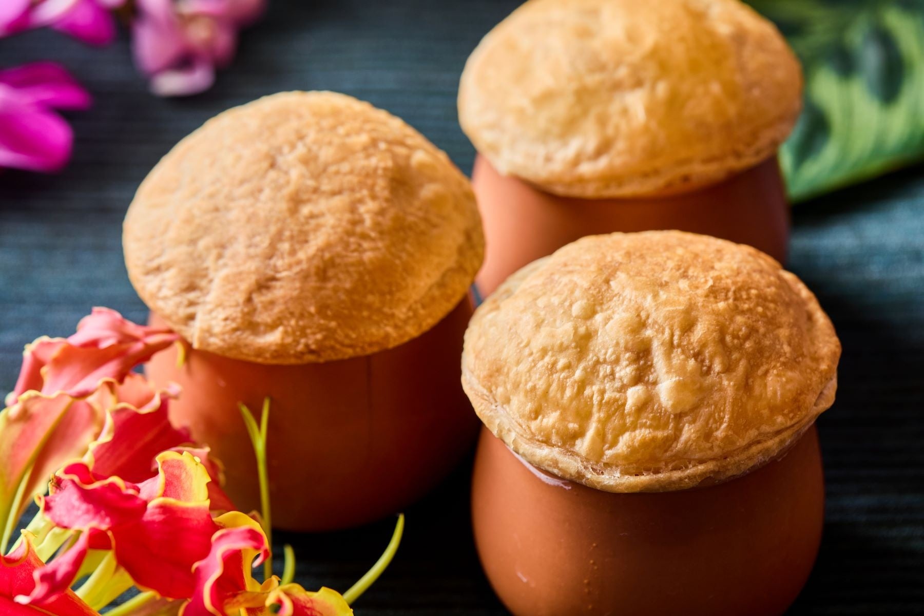 フカヒレとふわふわ卵のスープ パイ包み焼き(中国)