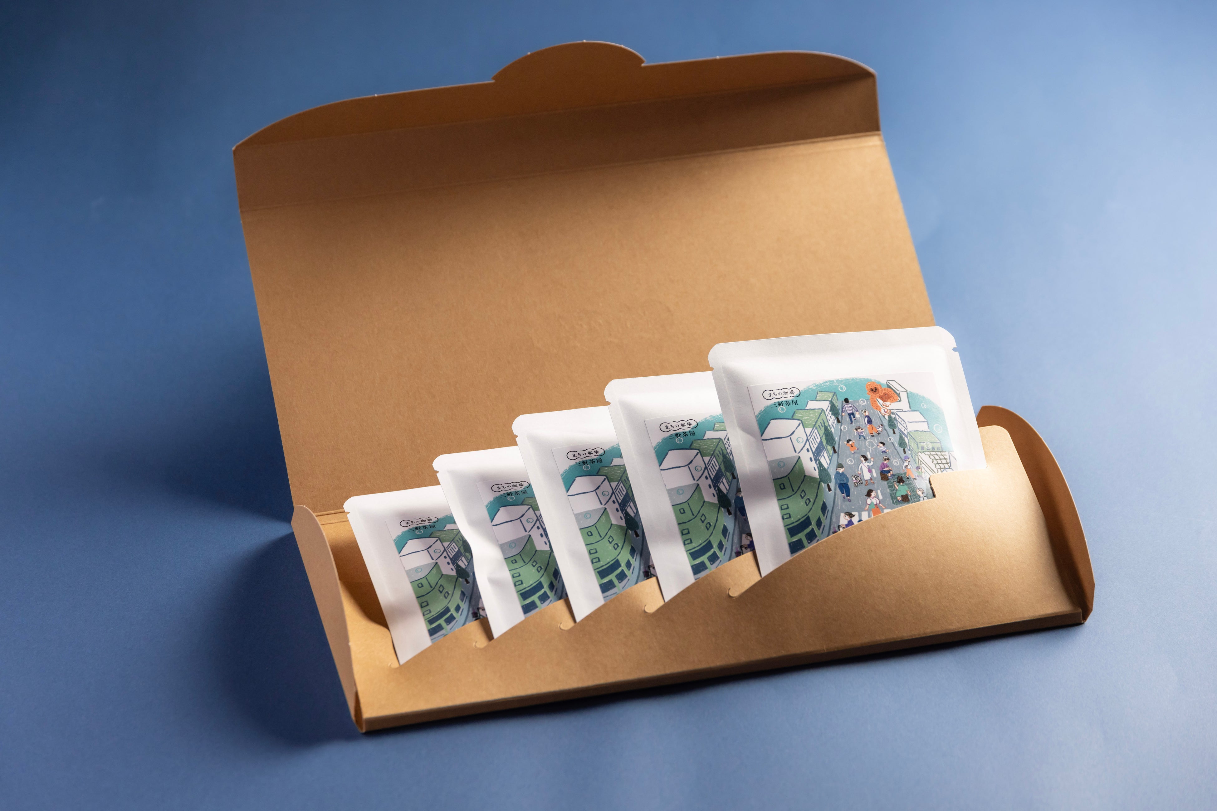 「まちの珈琲」は元々、雑誌『世田谷ライフ』が新刊発売のタイミングに合わせて、特集エリアをイメージしてノベルティとして作っていた非売品でしたが、「商品化してほしい」というたくさんのリクエストにお応えし、今回、販売することになりました(初回限定14エリア×各100セット。1セットに個包装のドリップバッグ5個)。
