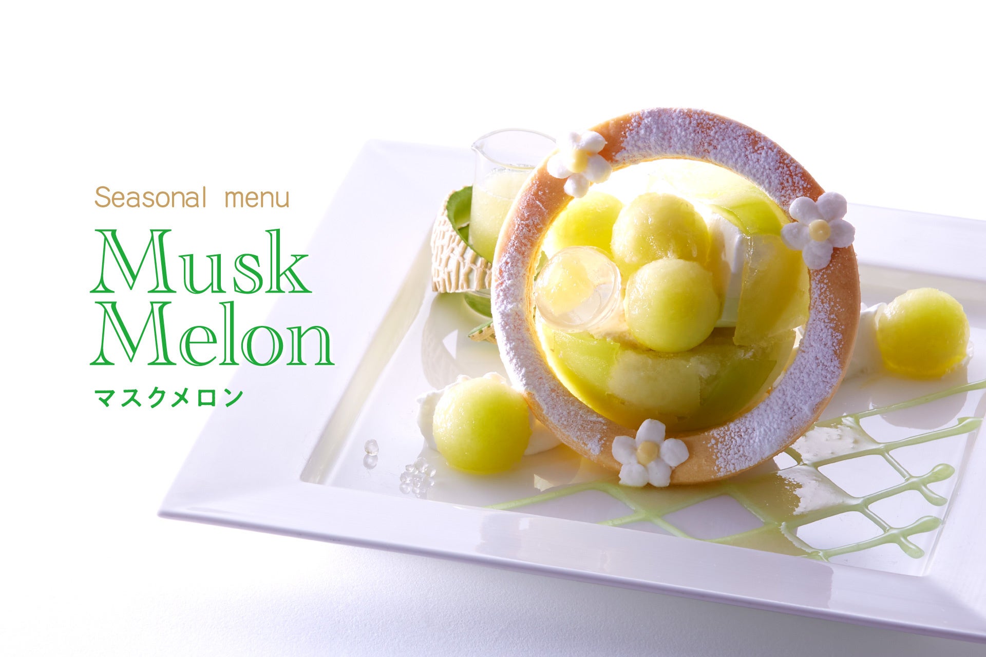専門店のクチュリエが食べ頃を見極め、味覚・臭覚・視覚・食感で楽しめるデザートに仕立てました。マスクメロンのとろけるような果肉からあふれ出す果汁は芳醇で、口いっぱいに香りが広がります。