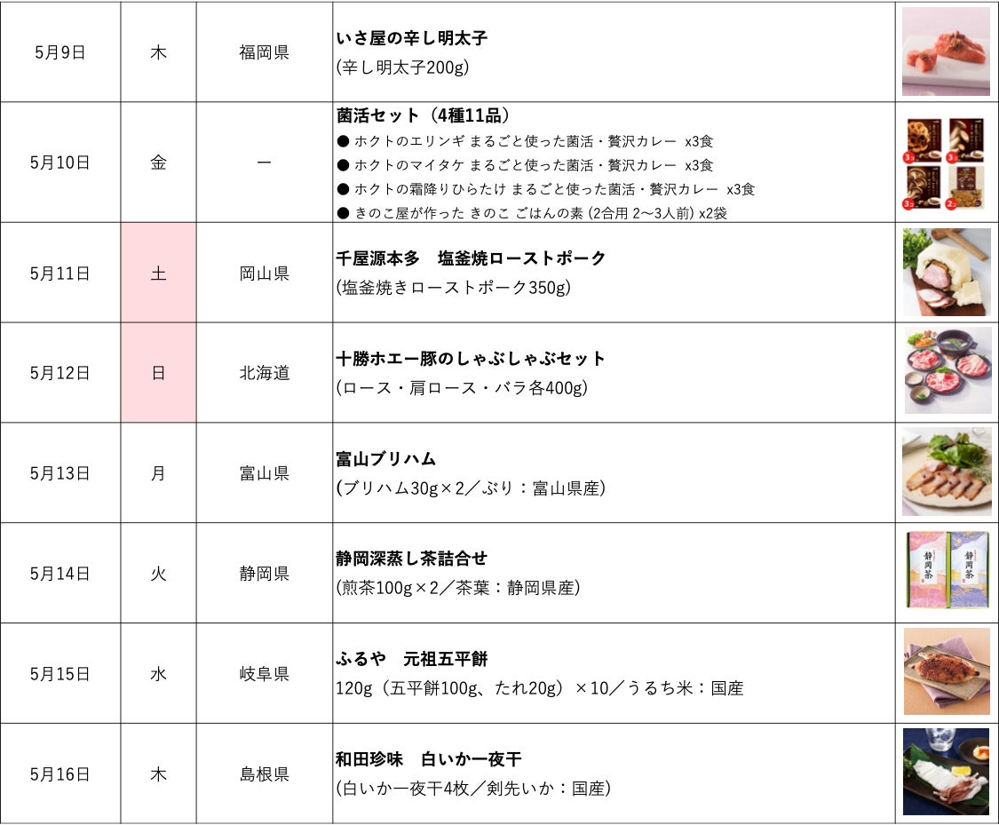 5/1(水)〜5/23(木)まで、毎日抽選で2名様に、以下の全国のご当地名産品やホクト菌活セットが、