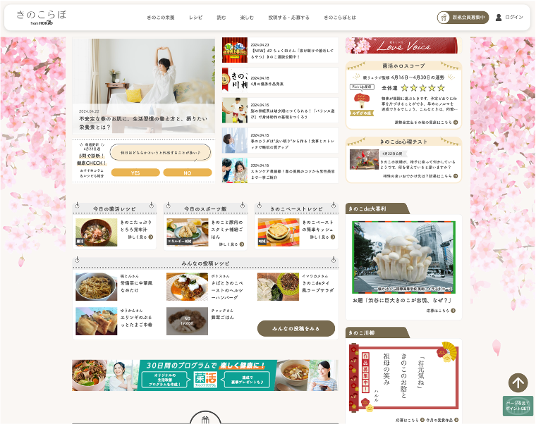 ホクトが運営する きのこを通して毎日をイキイキと過ごして頂くための情報サイトです。オリジナルきのこレシピや、今気になる健康・美容・食事・子育て・スポーツなどの暮らしに役立つコラムの紹介や、レシピや川柳の投稿、プレゼント企画などをお楽しみいただけます。