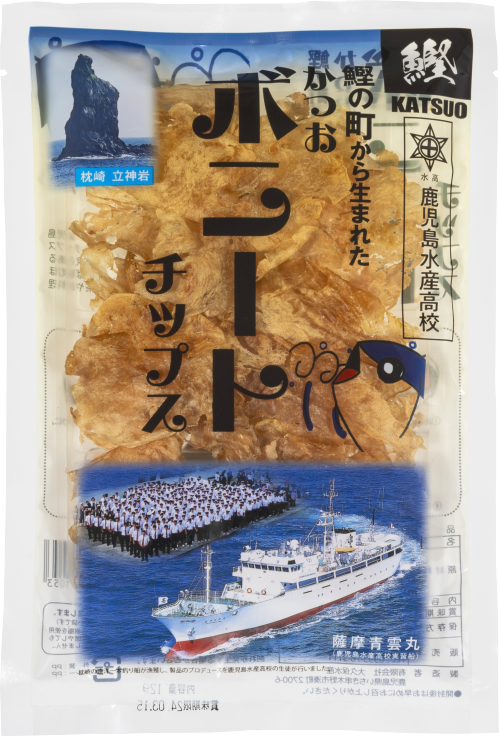 鹿児島水産高校の生徒の「枕崎をもっと知ってもらいたい!」という地元愛をきっかけに生徒たち自らがプロデュースしたかつおボニートチップス。遠洋一本釣り漁船が釣り上げた新鮮なかつおを使い、じっくりと熱を加え、手間暇かけて仕上げました。香ばしいジャーキーのような噛みごたえにかつお本来の美味しさが詰まった、噛めば噛むほどおいしい一品です。おやつやおつまみとしてはもちろん、サラダやお料理の素材にもおすすめです。
