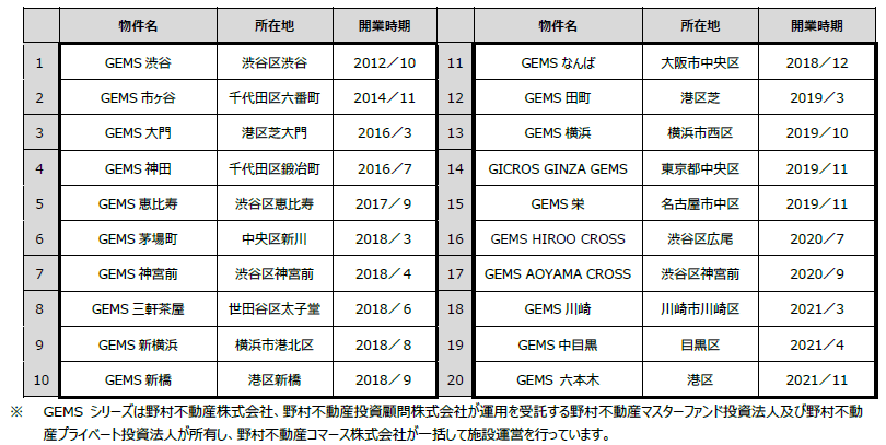 ※GEMS中目黒は3月8日~3月28日まで先行実施済