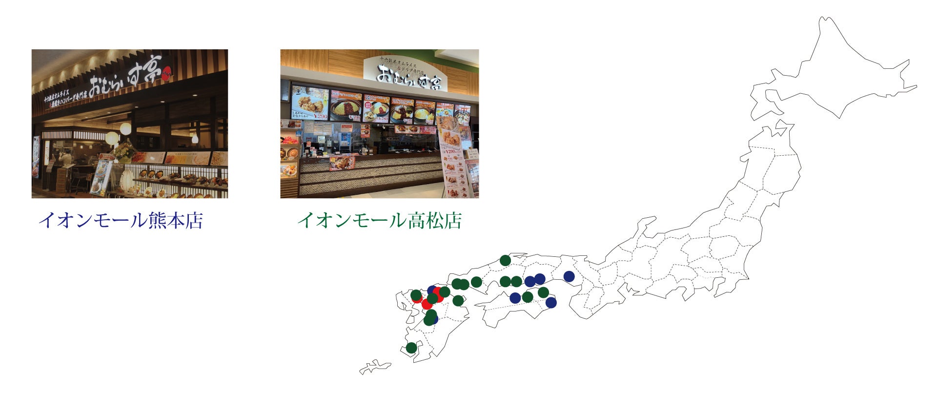「おむらいす亭」は西日本を中心に26店舗あり、業態は「レストラン」「炭焼レストラン」「フードコート」の3種類ございます。