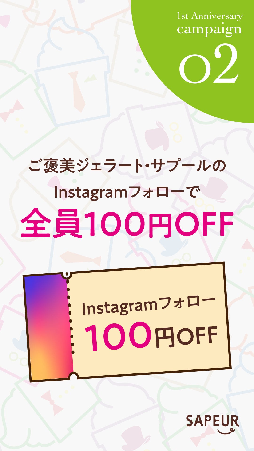 サプールのInstagramをフォローしていただくと、100円OFFいたします。