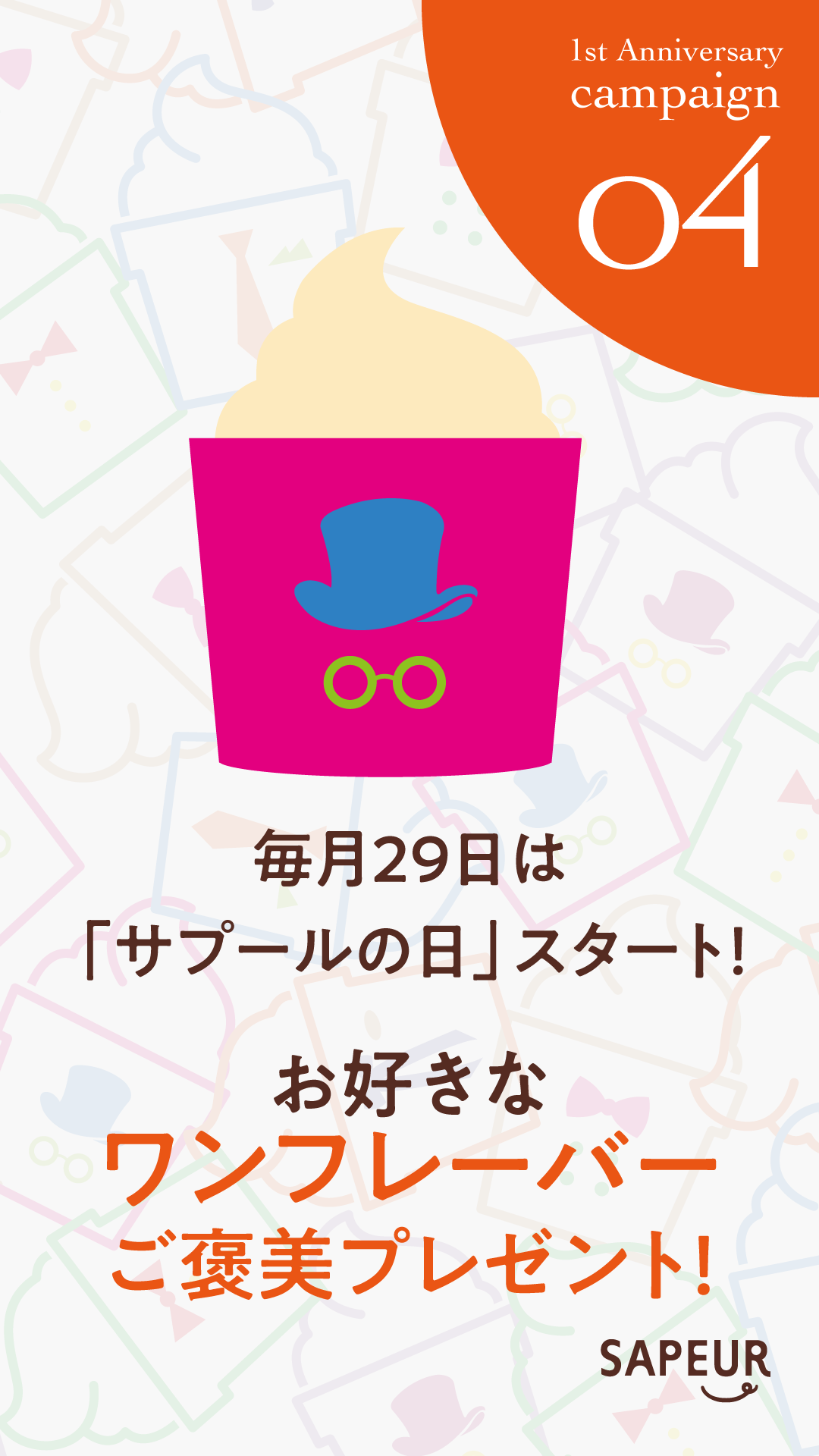 4. 毎月29日は「サプールの日」として、ワンフレーバーご褒美サービス(ワンスプーン)を実施。