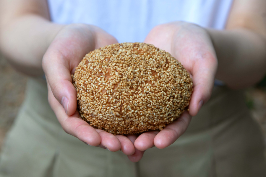 もちもちふわふわの生地に上質な餡子を詰め、たっぷりの胡麻をまとわせて揚げた、胡麻団子仕立てのあんぱん。「Bakery bank」本店のあんぱんをさらに親しみやすい形に仕立てた「揚げ胡麻団子あんぱん」をお楽しみください。