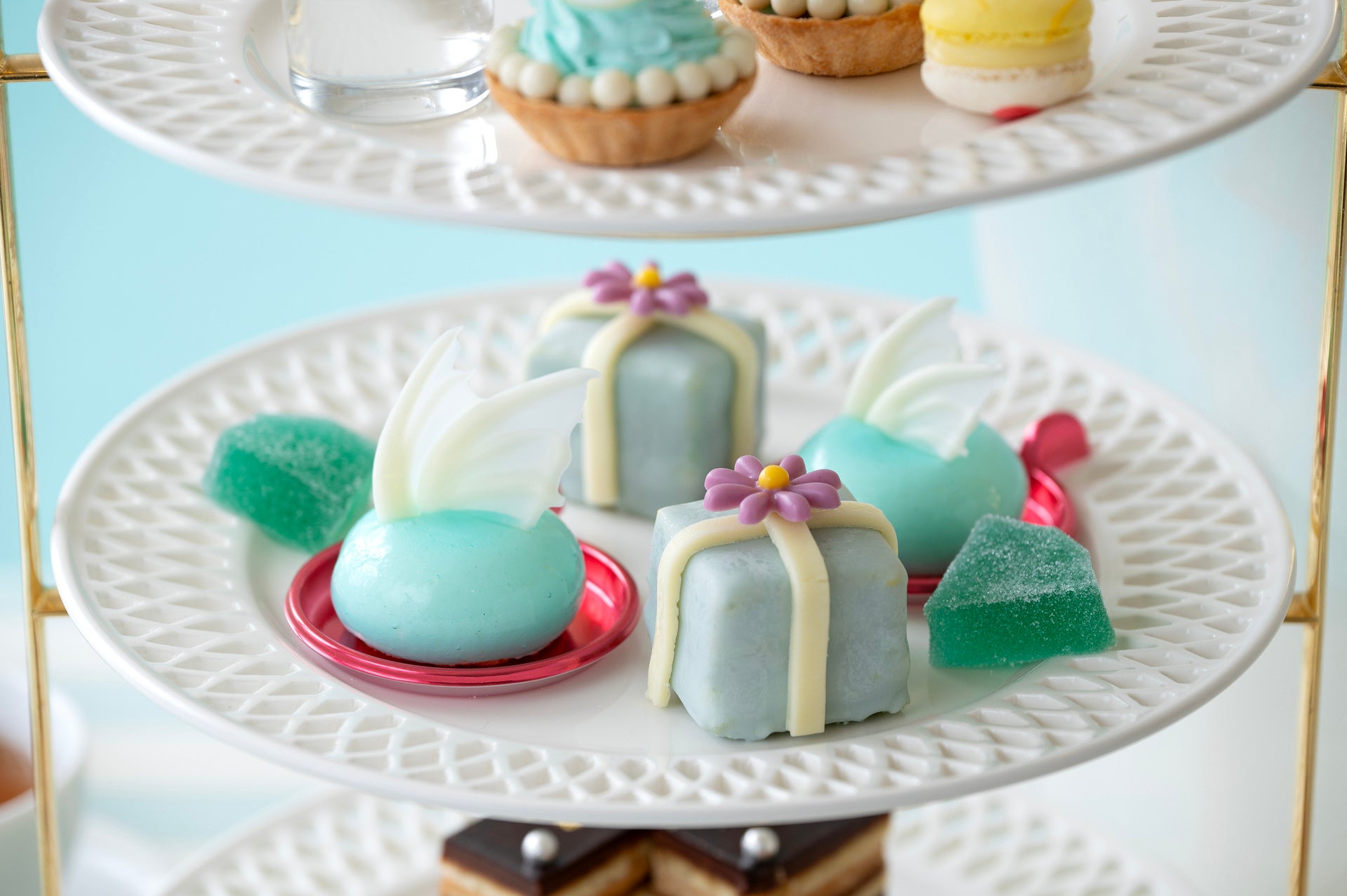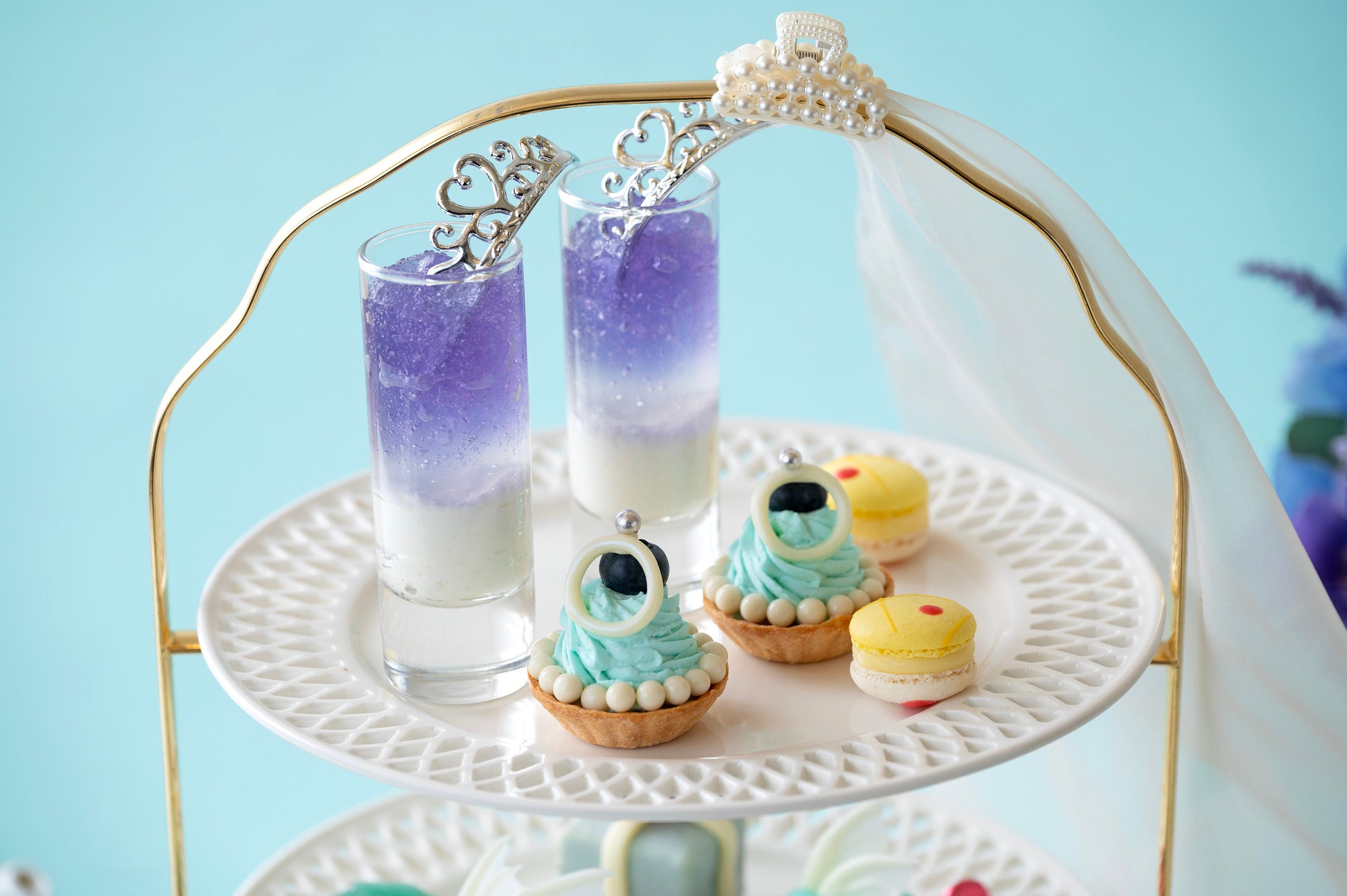 バタフライピージュレ、マリッジリングのプティタルト、レモンのマカロン