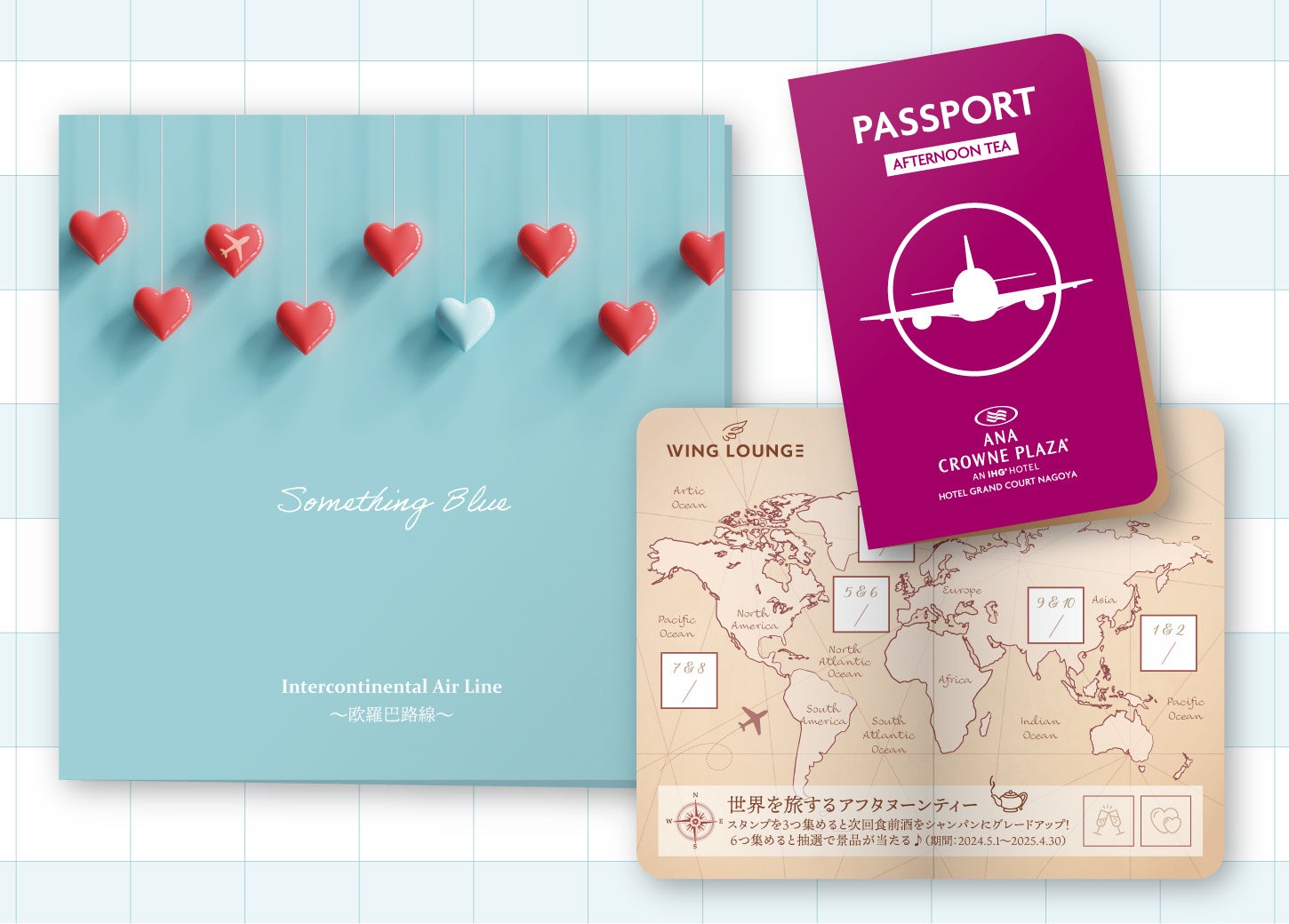 ANAクラウンプラザホテルグランコート名古屋(名古屋市中区、執行役員総支配人:島原 東)は、大人気のアフタヌーンティーセットを2024.5.1(水)より、ホテル特製アフタヌーンティーセット「Intercontinental Airline ~欧羅巴路線~」としてリニューアルし提供を開始します。ヨーロッパに伝わる結婚式の伝統的なおまじない「サムシングブルー」をテーマにした、上品なスイーツやセイボリーをご堪能いただけます。ホテル開業25周年を記念し、「世界旅行スタンプカード」が登場する特別企画も同時開催します。