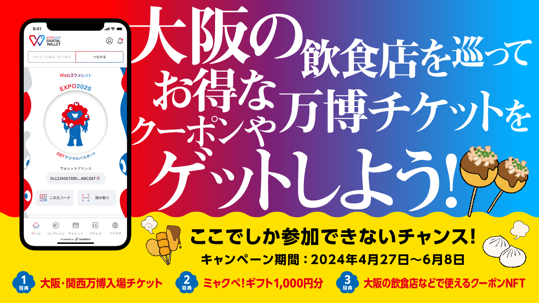 Web3技術を活用した大阪・関西万博の機運醸成・新たな顧客体験の提供に向けて、ORA加盟店舗の50店舗以上で店舗特典を利用可能なクーポンNFTガチャキャンペーンを実施します。
