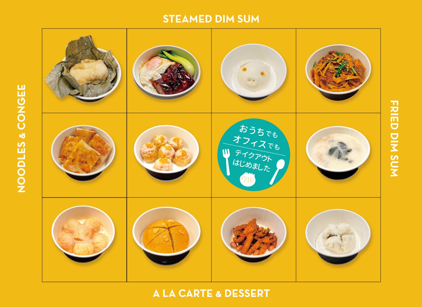■海⽼⼊り蒸し餃⼦(6P)¥1,253(税込) ■ 海⽼豚焼売(6P)¥1,037(税込) ■ ⼲し海⽼⼤根餅(4P)¥1,037(税込) ■ 蓮の葉ちまき(1P)¥950(税込) ■ 海鮮と海⽼の⾹港粥 ¥1,382(税込) ■ 鶏とキノコの⾹港粥 ¥734(税込)■ 塩豚とピータンの⾹港粥 ¥626(税込) ■⿃⾜醤油ソース蒸し ¥626(税込) ■⾹港⾵⽜⾁炒麺 ¥1,058(税込)■ローストポーク丼 ¥950(税込) ■マーライコウ ¥518(税込) ■チャーシューパオ(1個) ¥367(税込) ■⾹港⾵カスタード饅(1個) ¥302(税込)