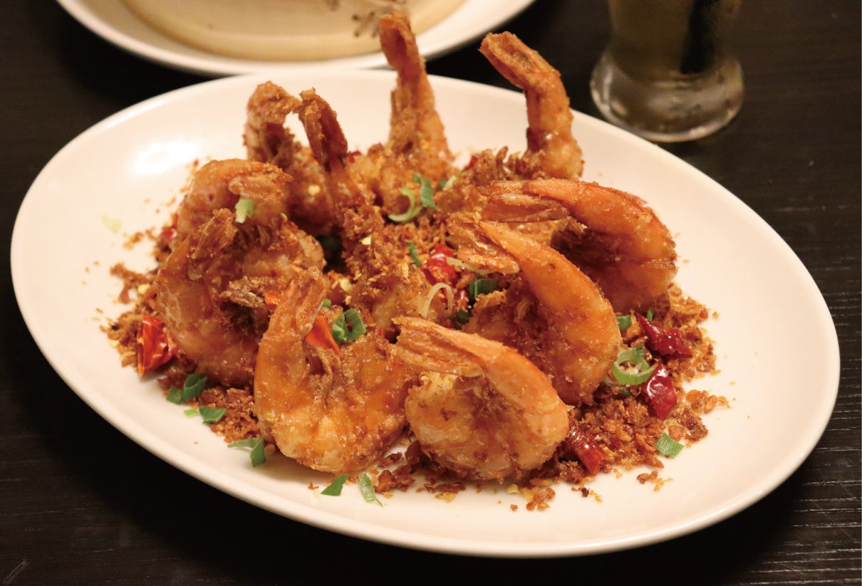外側はサクっと香ばしく、中はぷりとした食感を楽しむことができます。揚げたての海老にチリガーリック粉をまぶしてますので、そのままお召し上がり頂くと、その美味しさがより一層引き立ちます。