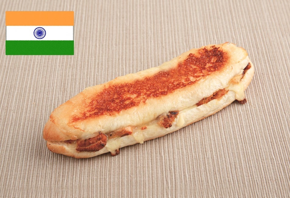 インド料理のタンドリーチキンをチーズと一緒にサンド。