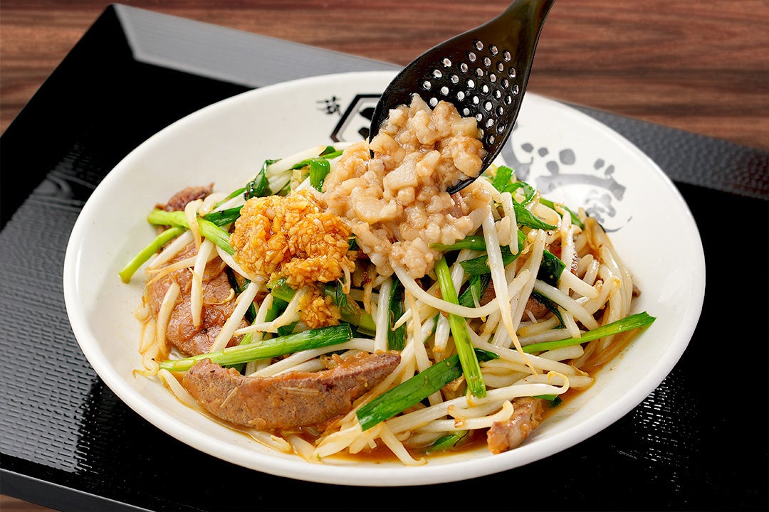 レバー・もやし・ニラを醤油ベースの特製かえしで炒め、病みつきになるガツンと味に。