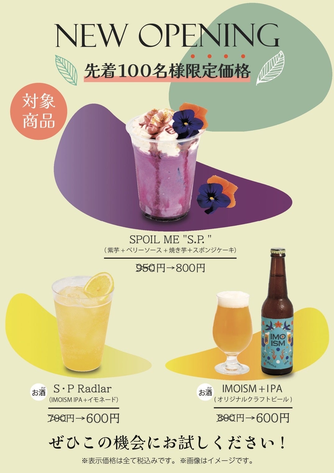 国産さつまいもで作る無添加の自然食品をお手頃価格で届けたい。創業からわずか2年で、ネット通販1 日1万件以上の注文を記録、楽天市場で総合1位を獲得し、昨年オープンした常設店でも、連日大行列を作る芋國屋の3店舗目は、新業態の「S・P club by IMOKUNIYA(エスピークラブバイイモクニヤ)」を2024年5 月1日(水)にグランドオープンします。『S・P』はスイートポテトの略で、海外の方が多い原宿、表参道エリアで全世界の方に国産さつまいもの魅力を知ってもらいたいという思いで命名しました。