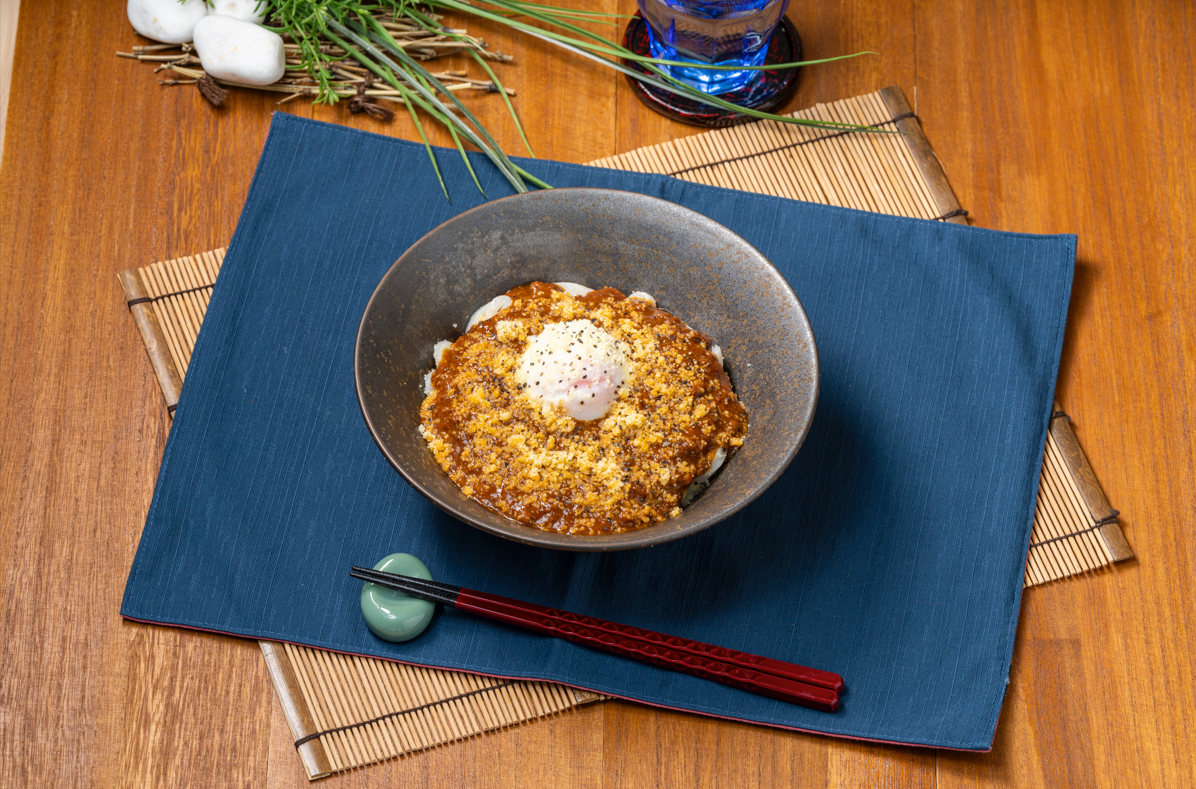 カレー風味で食欲が増進されるとともに、温玉を絡めることで