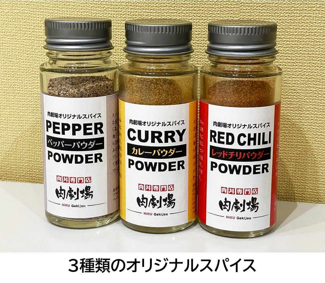 トッピングメニューも多くご用意されているので、気分や好みに合わせてカスタマイズが可能です。さらに、味変用のオリジナルスパイスも3種類用意されているため、いろいろな組み合わせを味わうことが出来ます。