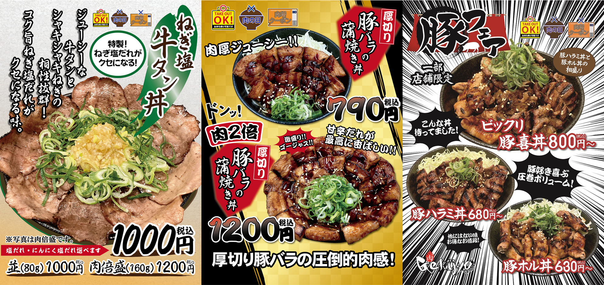 ・劇場丼ライト(肉150g):1,000円→500円
