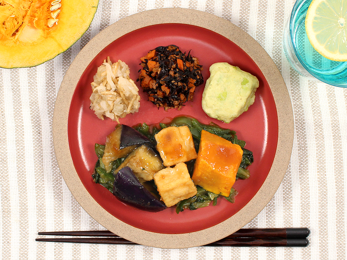 副菜は、大根と揚げたごぼうを合わせた切干ごぼう、ひじき煮、ふわふわの枝豆豆腐です。