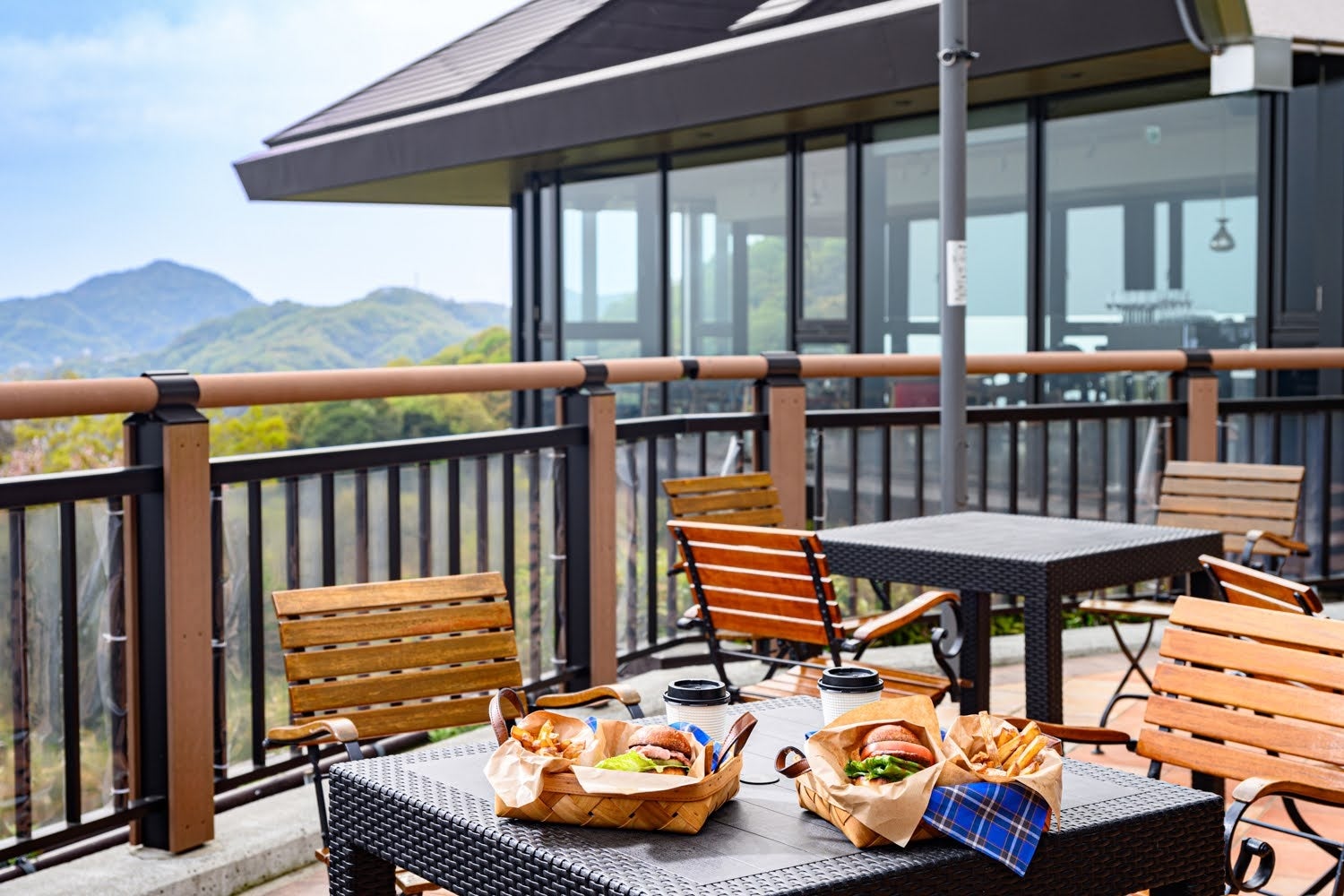 「神戸北野テラス」では、神戸の街と海を眼下に見渡せるテラス席(10席)をご用意しております。これからの季節、街より少し涼しい六甲山での「21世紀の至福の贅沢バーガー」は、日常のリラックスタイムに、ハイキングのランチに、ドライブのちょっと寄り道にと、自然と共にお楽しみいただけたらと考案致しました。