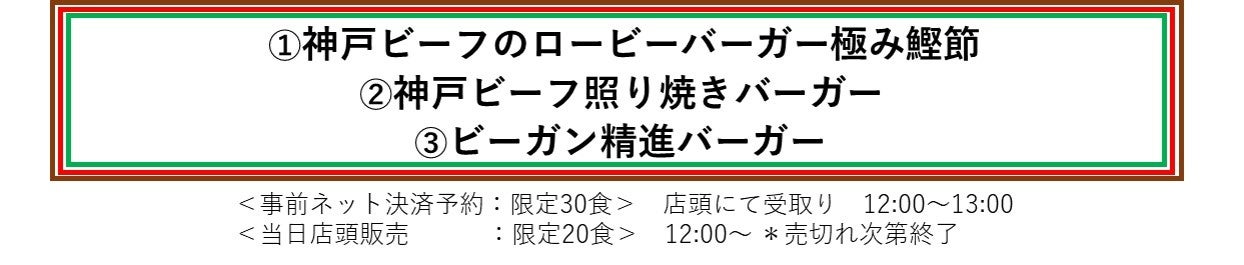 神戸牛の希少部位を使ったロービー(ローストビーフの略称)、神戸牛の風味と食感にこだわった照り焼きパティ、そしてビーガンの方々にも満足いただける大豆ミートのパティを使った3種を厳選しました。