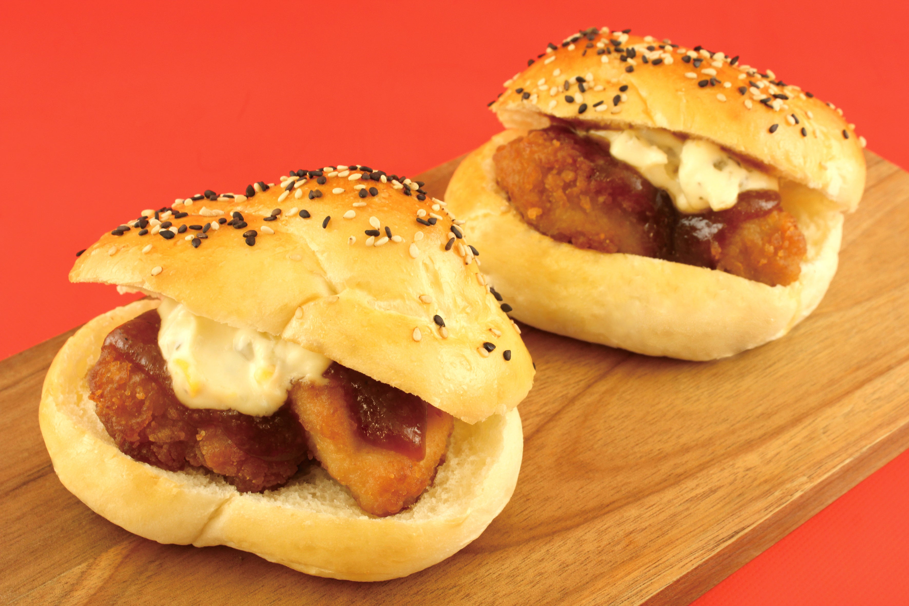 からあげに醤油だれとタルタルソースをトッピングし、ふわふわのパンにサンドしました。北海道では鶏のからあげはザンギと呼ばれており、醤油だれの甘辛さとタルタルソースのまろやかさが食欲をそそります。