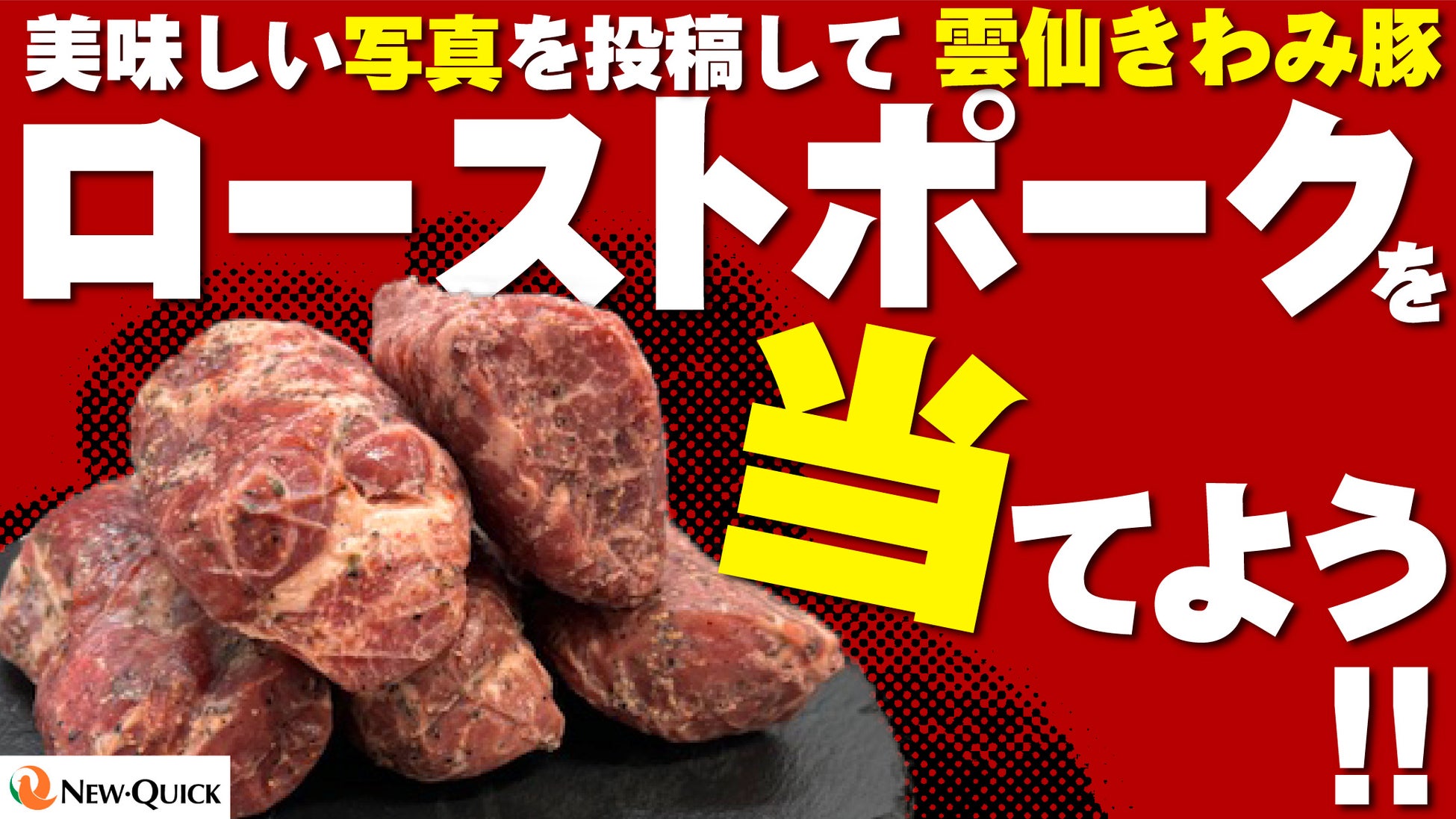 a賞.ニュー・クイックのホームページで紹介させていただいた5名様にニュー・クイックオリジナルの「雲仙きわみ豚ローストポーク120gブロック 5個(合計で600g相当)をプレゼントいたします。