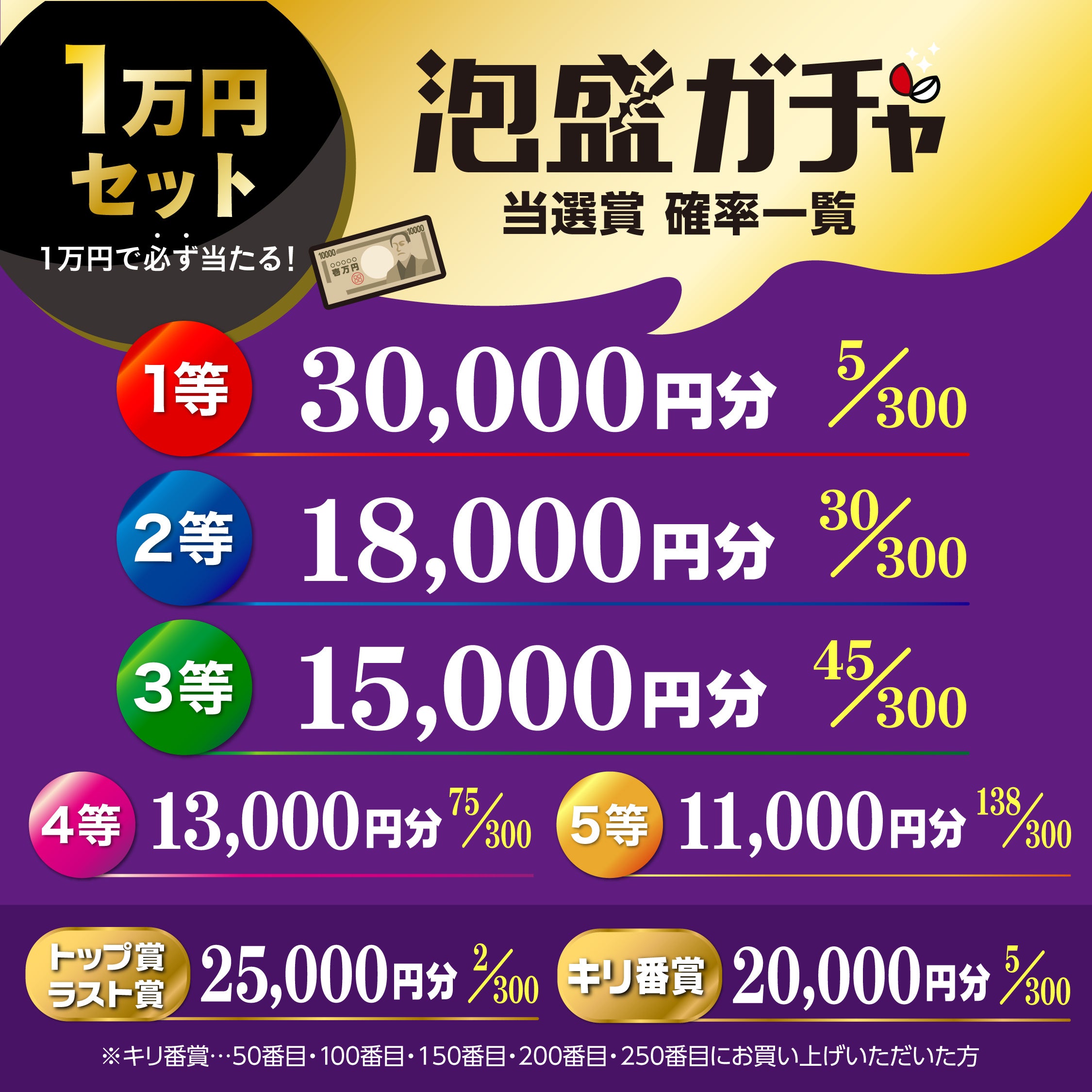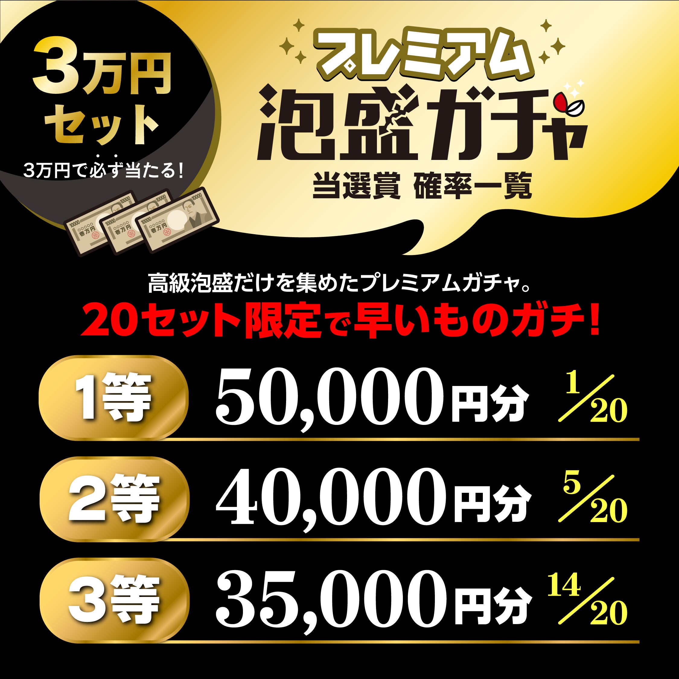 ◆1万円のガチャで最大3万円分のお酒が当たる!