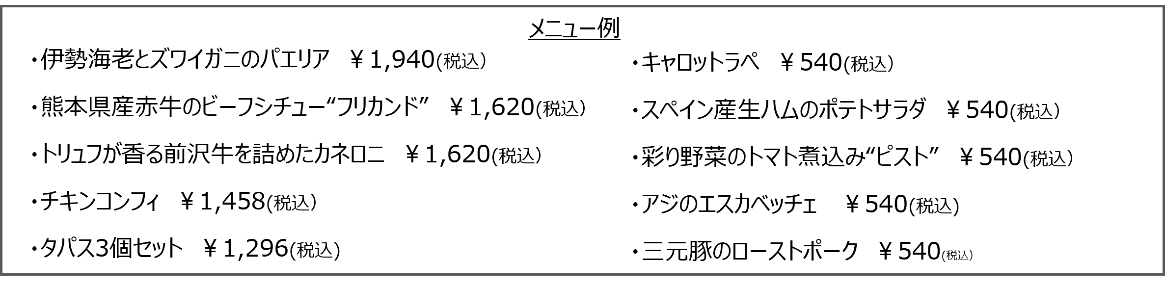 本イベントでは、濃厚な魚介だしで炊き上げたRico自慢のパエリアや、スペイン・カタルーニャ地方の牛肉の赤ワイン煮込み“フリカンド”などを販売。さらに、熊本県産赤牛「延寿牛」を贅沢に使用したパエリアや、大きく肉厚で、上品な香りが特徴の「黒鐘椎茸」を使用したパイ包みなど、今回限定の特別メニューも取り揃えています。