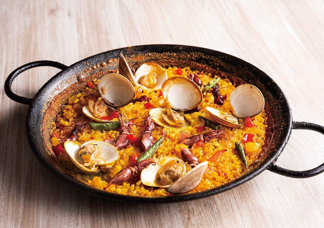 人気No.1のシーフードパエリアを旬の食材とともに味わえます。