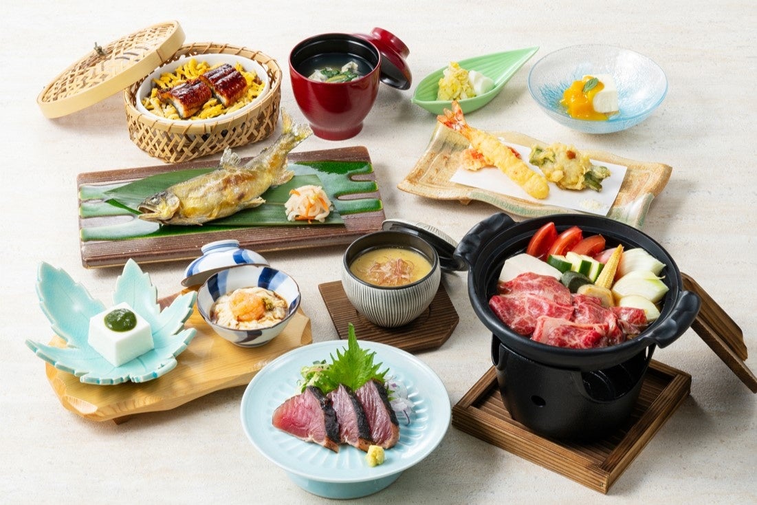 使用した黒毛和牛のすき煮や、鰹・鮎・鰻などの旬食材が楽しめる創作懐石「泉」を用意しました。またフカヒレやあわ