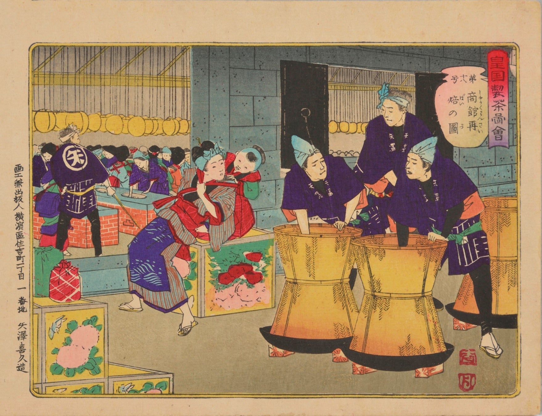 明治時代、「お茶」は「生糸」と並ぶ重要な輸出品目でした。 茶産地の開拓や輸出港の整備など政府の援助もあり、最盛期には、当時の輸出総額の15~20%を占めるまでになります。 本展では、輸出用のお茶を製茶する様子がわかるパネルや製品に貼っていたラベルを展示し、当時の様子をご覧いただけます。